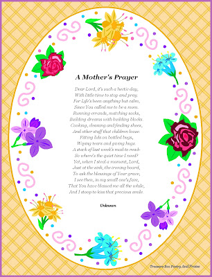 If I had a flower for each time I thought of My Mother, I could walk in my garden foreverDo you want to say a few words to your mum this Mother's Day - but not sure you have the literary know-how? Some of history's greatest poets, writers, thinkers, song writers and public figures have written or spoken on the subject of motherhood. And you shouldn't feel ashamed of quoting from one of the greats in your Mother's We're all mothered during our lives. No matter how old we are, our mums are there as mothers - to care and support, to share hard-learned knowledge, to celebrate successes and to teach us how to be good human beings. Historically, many poets have written about mothering and motherhood; these poems for Mothers Day show the experience from mother and child views. Find a poem (or just a few lines of poetry) for mum to include in a Mother's Day card or as a preface for a specially collated album of photographs of you and your mum. Here are just a few examples of poems for Mother's DayThe moment a child is born, the mother is also born. She never existed before. The woman existed, but the mother, never. A mother is something absolutely new. Rajneesh